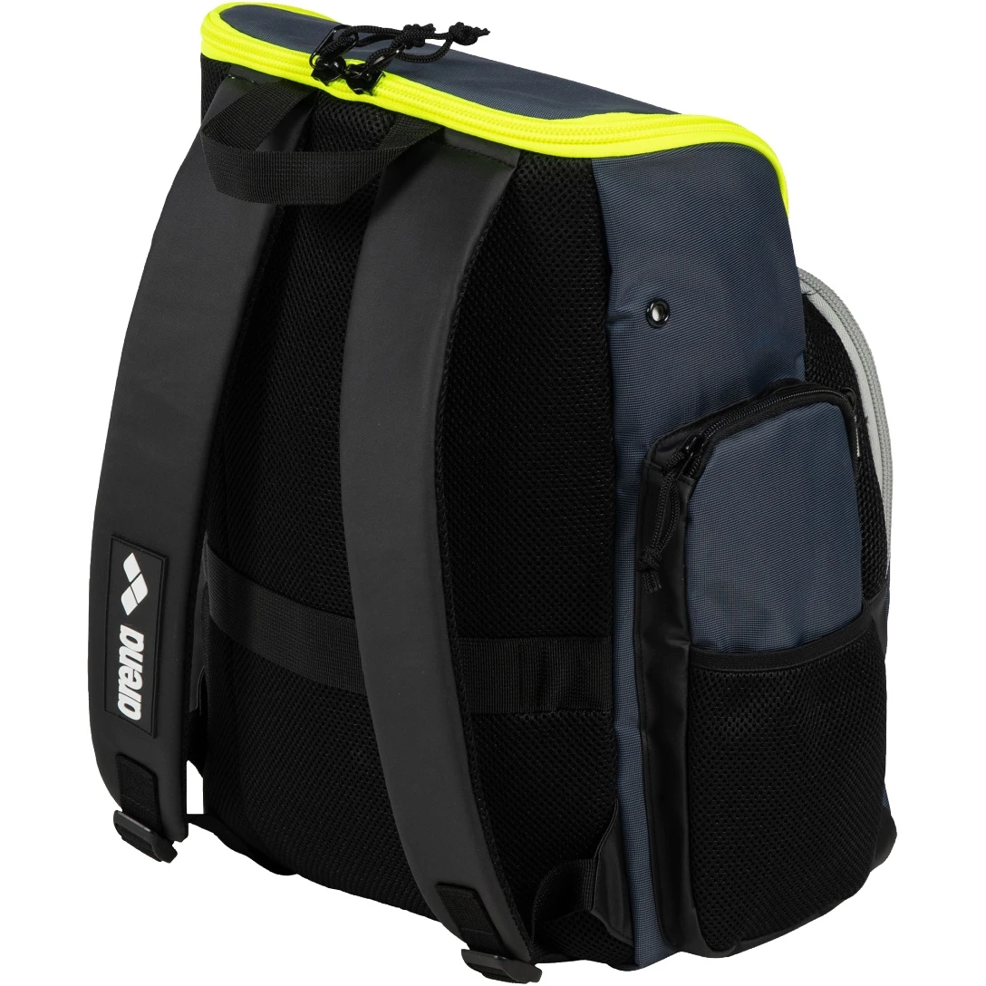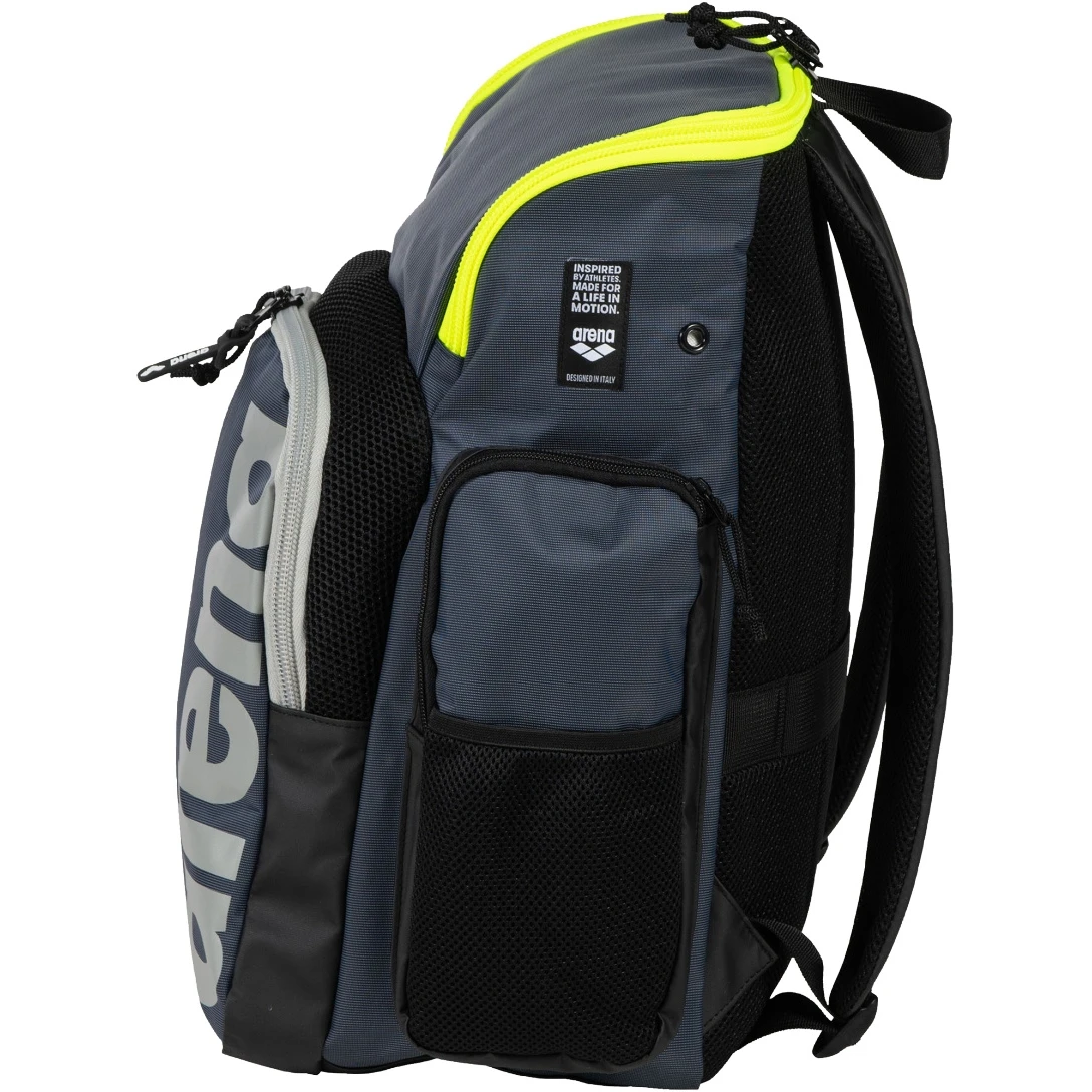 Compact, comfortabel en stijlvol, de arena Spiky III 35L rugzak is ideaal voor zwemtraining, andere sportactiviteiten en vrije tijd. Het ruime hoofdvak, drie extra vakken met rits en zijvakken van gaas bieden veel opbergruimte. Met ademende mesh inzetstukken en waterafstotend materiaal voor optimale vochtregulatie. Het gevoerde, ademende rugpaneel en de ergonomische riemen zorgen voor een uitstekend draagcomfort. De waterafstotende bodem beschermt de inhoud wanneer deze nat is. Afmetingen: 46cm x 30cm x 23cm, 35L
