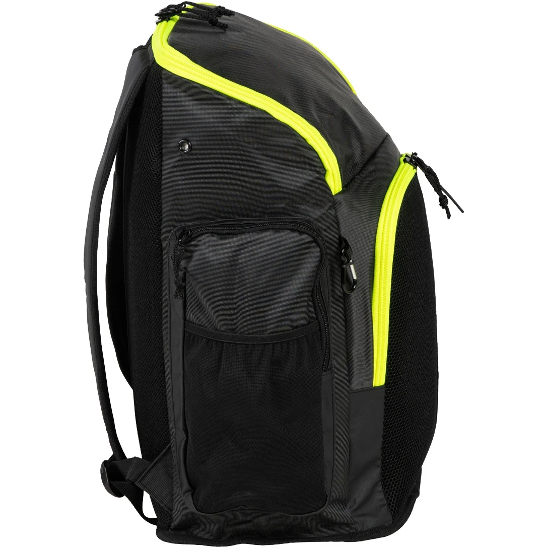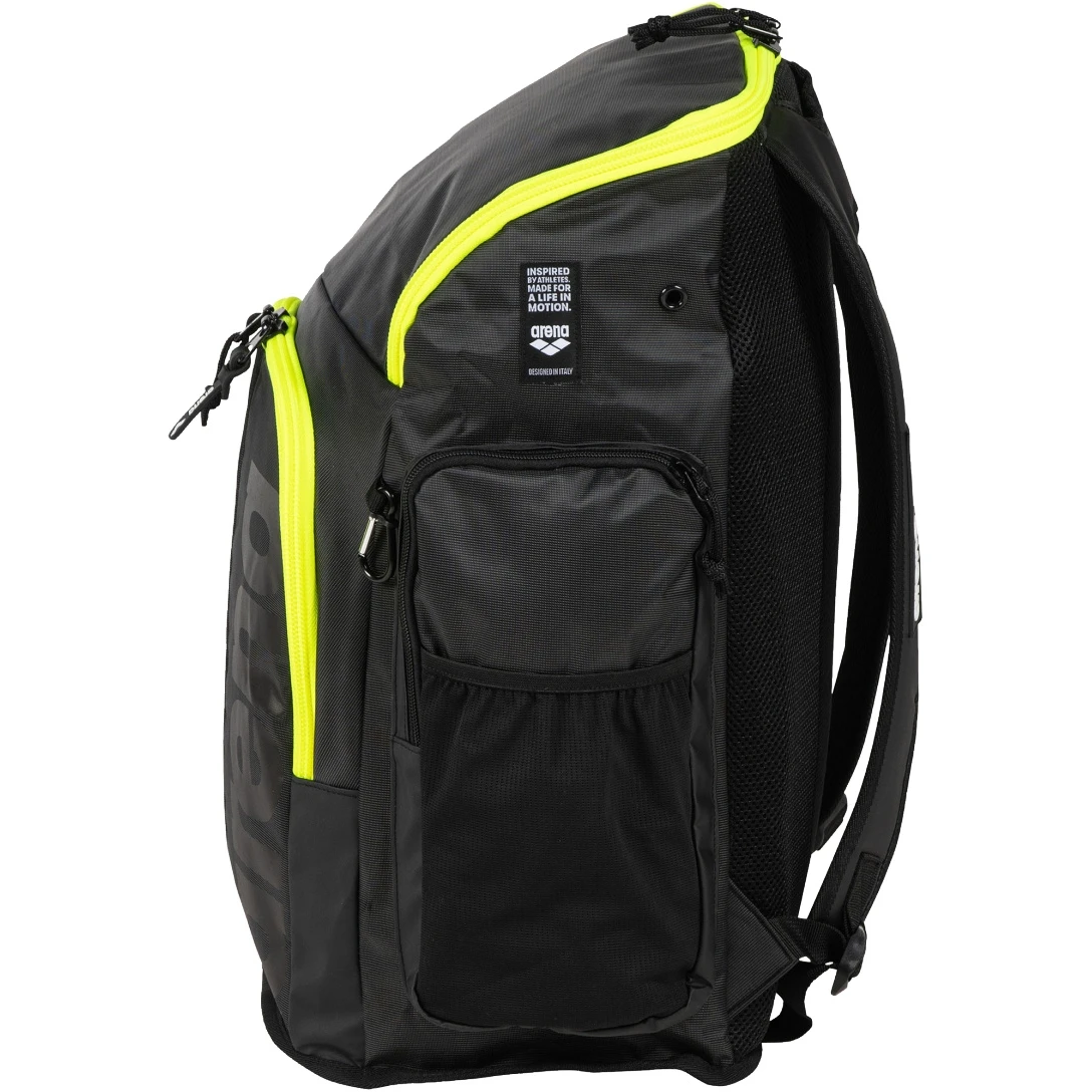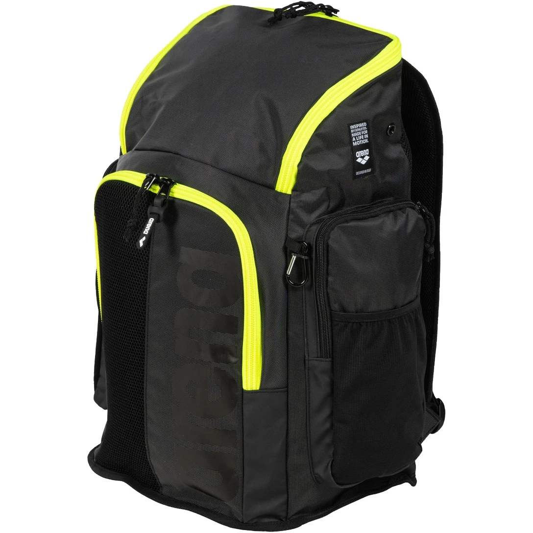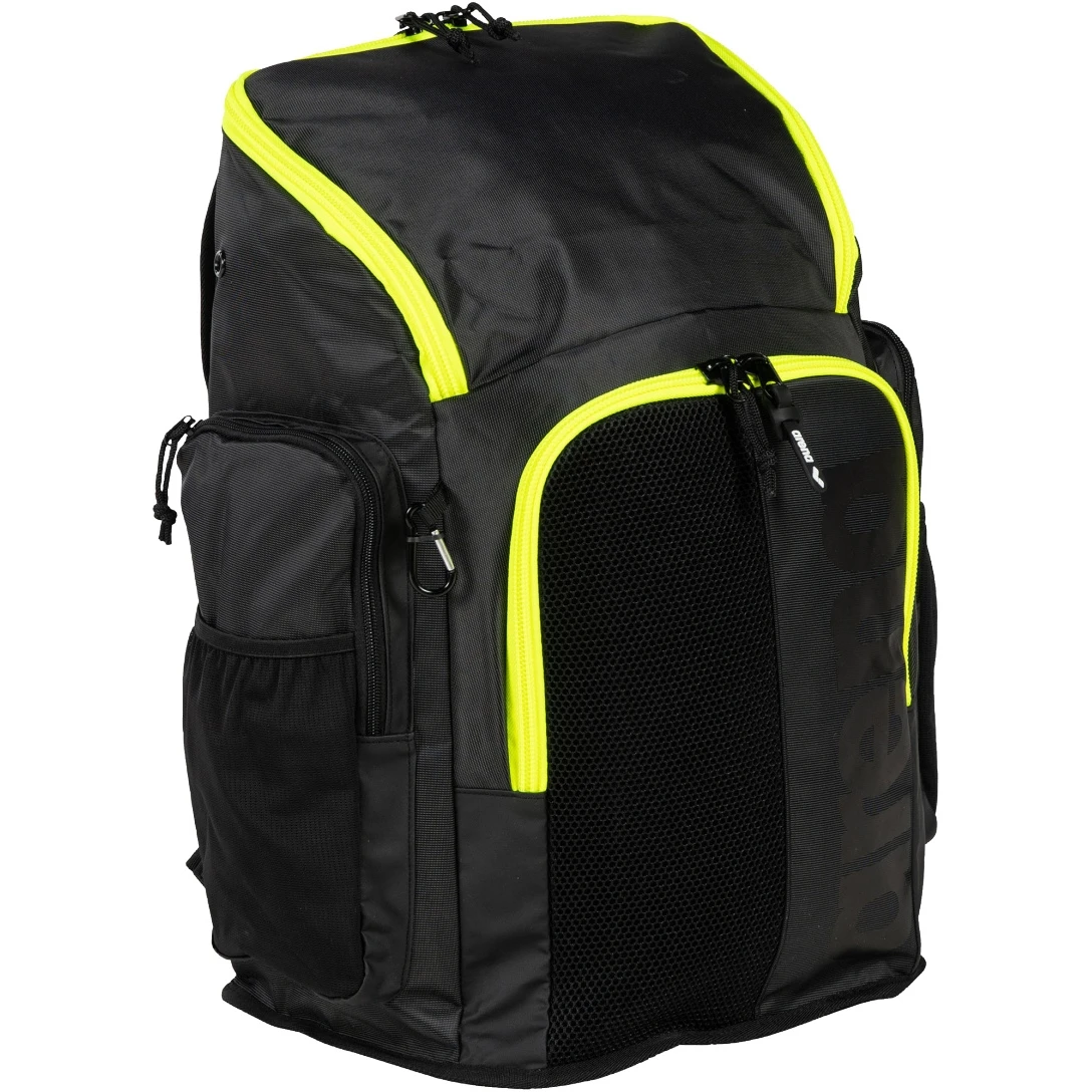 De ruime, comfortabele en stijlvolle arena 45L Spiky III rugzak is speciaal ontworpen voor zwemmers. Het ruime hoofdvak, drie extra zakken met rits, zijvakken van gaas en een apart zakje voor natte spullen bieden veel opbergruimte. Met ademende mesh inzetstukken en waterafstotend materiaal voor optimale vochtregulatie. Het gevoerde, ademende rugpaneel en de ergonomische riemen zorgen voor uitstekend comfort. De waterafstotende bodem beschermt de inhoud wanneer deze nat is. Afmetingen: 50cm x 36cm x 27cm, 45L