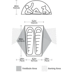 De vestibule kan worden aangepast om de bruikbare ruimte te vergroten en biedt bescherming tegen motregen en zon. Uw ultieme ultralichte thuis weg van huis.