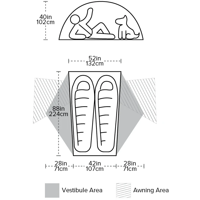 Om de levensduur van de tentvloer te verlengen, raden we aan een Big Agnes tentzeil te gebruiken, apart verkrijgbaar.