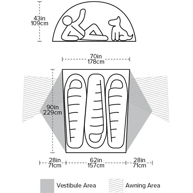 De vestibule kan worden aangepast om de bruikbare ruimte te vergroten en biedt bescherming tegen motregen en zon. Uw ultieme ultralichte thuis weg van huis.