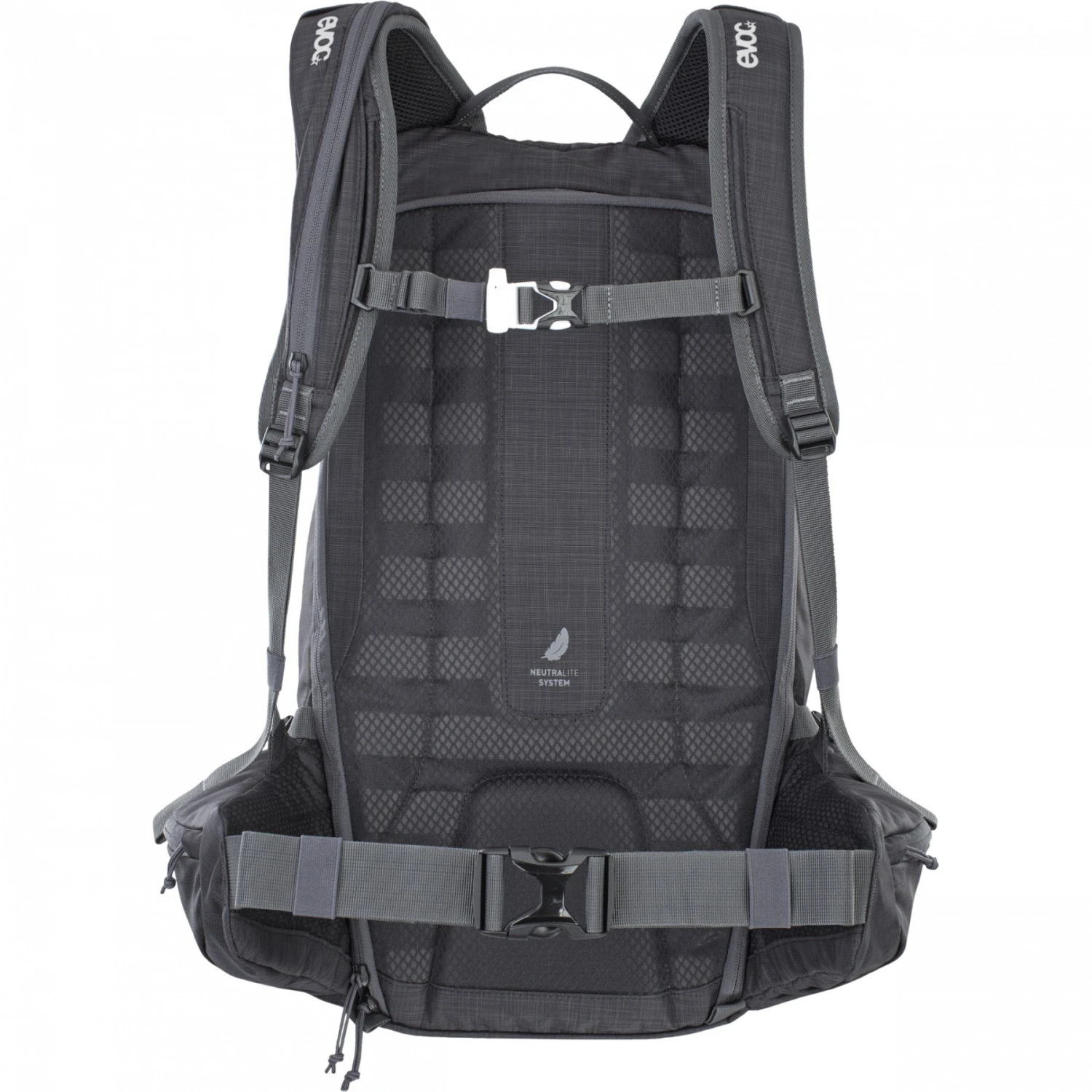De NEUTRALITE SYSTEM staat voor een neutraal en licht draaggevoel van onze rugzakken. De lastverdeling volgt het concept van de „Body Hugging“, zodat de rugzak perfect in positie blijft – zelfs tijdens manoeuvres vol actie. Via gesegmenteerde, strategisch geplaatste kussentjes op de rug wordt het gewicht herverdeeld over de brede heupgordel en naar het zwaartepunt van het lichaam via goed gevoerde, ergonomisch gevormde schouderbanden.