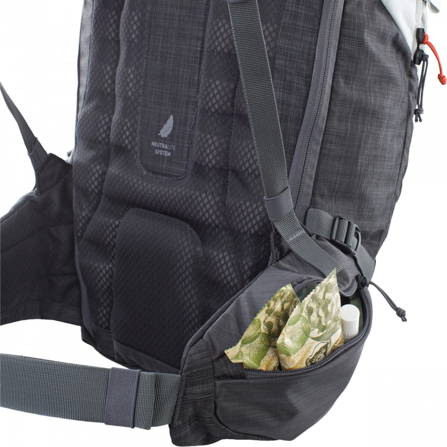 De NEUTRALITE SYSTEM staat voor een neutraal en licht draaggevoel van onze rugzakken. De lastverdeling volgt het concept van de „Body Hugging“, zodat de rugzak perfect in positie blijft – zelfs tijdens manoeuvres vol actie. Via gesegmenteerde, strategisch geplaatste kussentjes op de rug wordt het gewicht herverdeeld over de brede heupgordel en naar het zwaartepunt van het lichaam via goed gevoerde, ergonomisch gevormde schouderbanden.