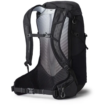 Vanuit het idee om je rugzak te laten meebewegen met de natuurlijke bewegingen van je lichaam, zijn het schouderharnas en de heupgordel elastisch zodat het ondersteuningssysteem van de rugzak met je meebeweegt. Het onderste deel rekt uit en vormt zich naar je onderrug, zodat de last van je rugzak dynamisch wordt verankerd. Bovenaan zorgt de verstelbare torso voor de perfecte pasvorm om de last in evenwicht te houden met de geperforeerde schouderbanden. Het hele systeem ademt dankzij de gewatteerde rug met ingewerkte ventilatiekanalen om warmte af te voeren en uw rug koeler te houden.