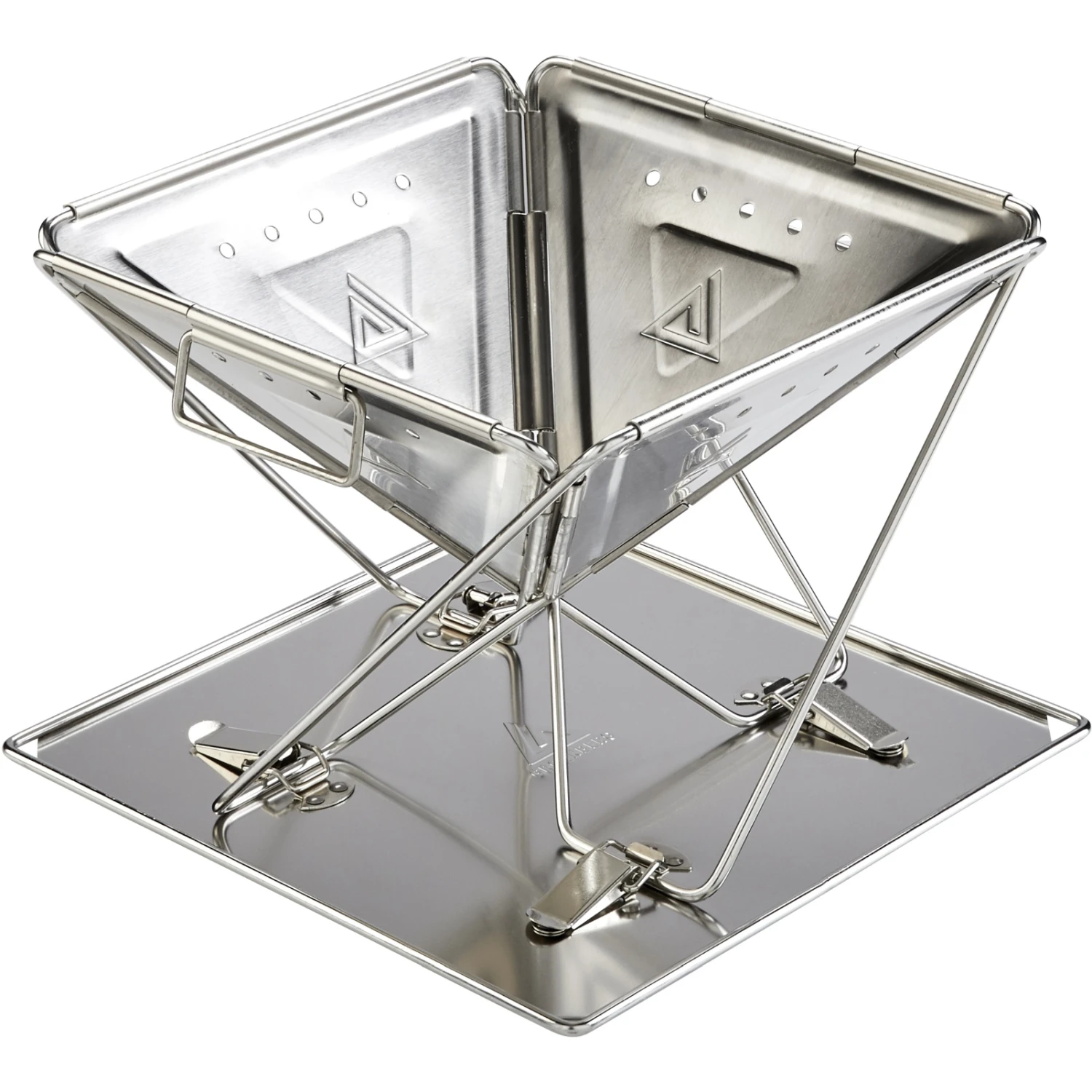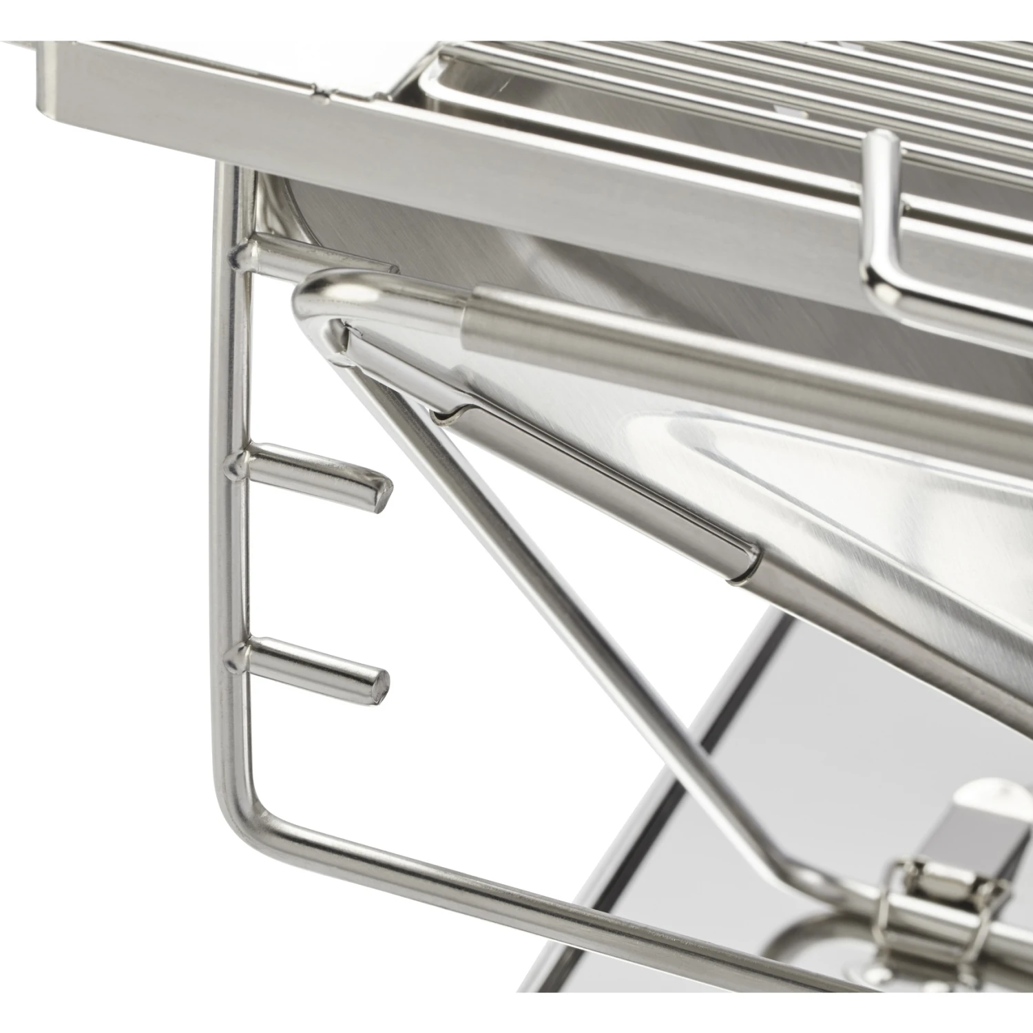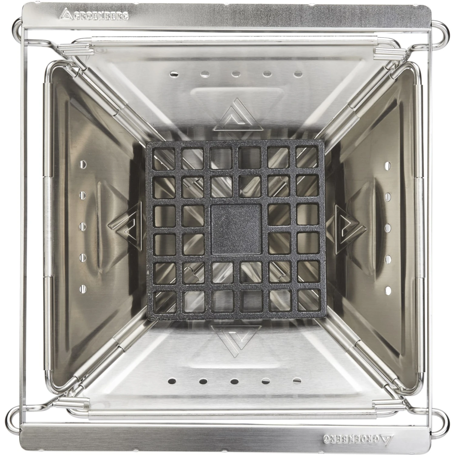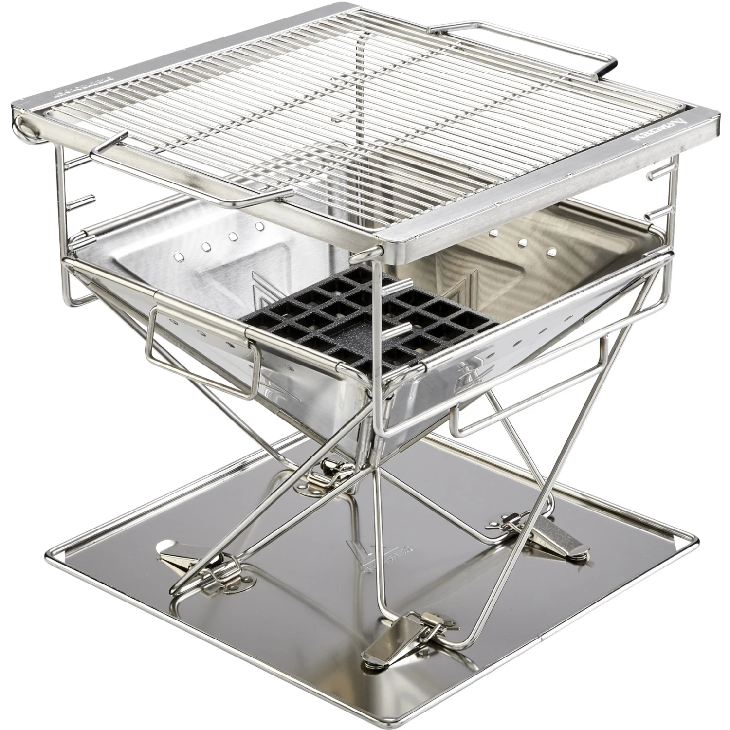 Openingen in het bovenste deel van de vuurschaal voorkomen dat het materiaal verdraait, terwijl openingen in de scharnieren zorgen voor een perfecte ventilatie. Om te voorkomen dat houtskool op de vloer valt en de barbecueplaats vervuilt, is de barbecue voorzien van een roestvrijstalen bodemplaat. Voor optimale controle is het grillrooster in drie stappen in hoogte verstelbaar.