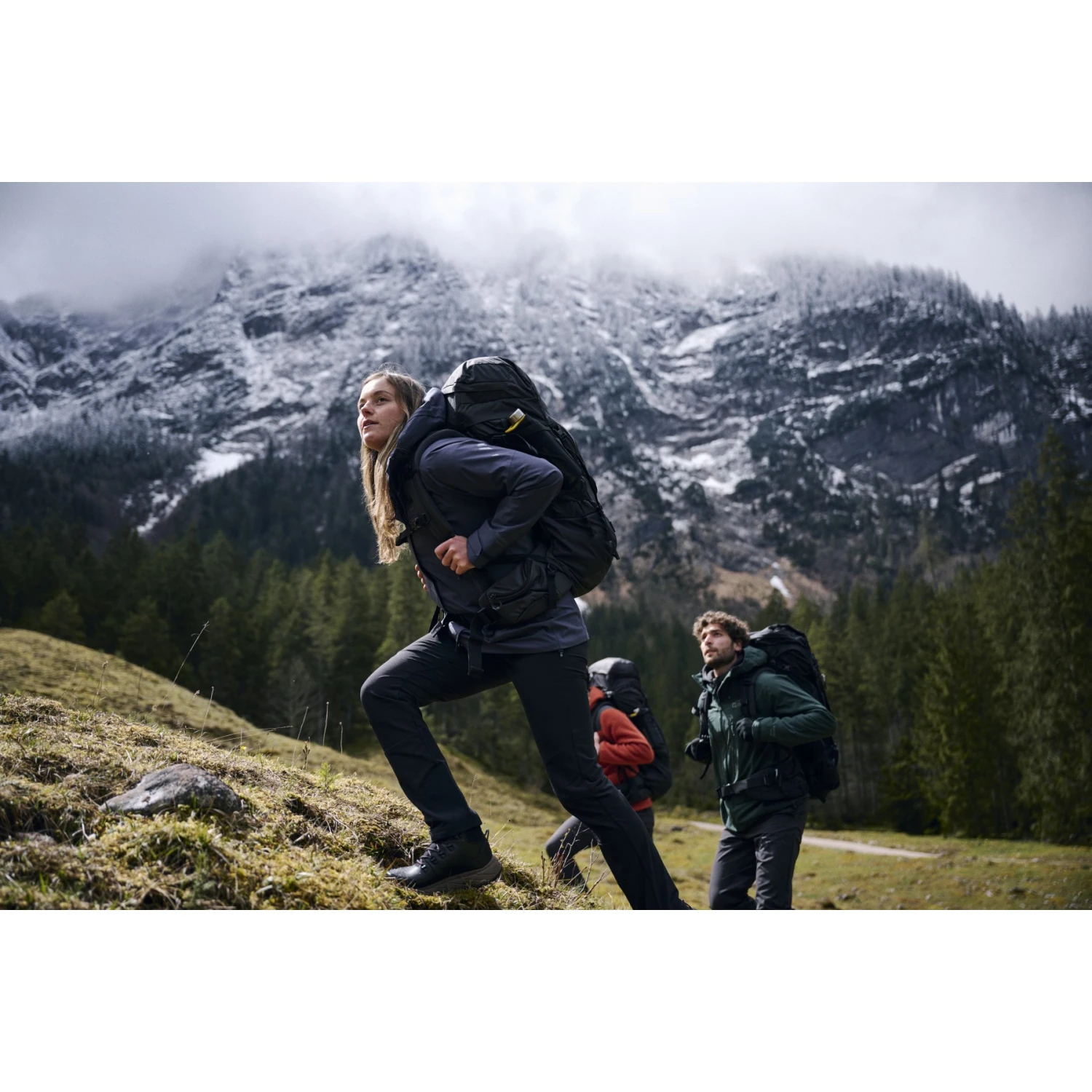 De HIGHLAND TRAIL 50+5 trekkingrugzak voor dames biedt veel ruimte, heeft een lichtgewicht en comfortabel draagsysteem en is gemaakt van gerecycled materiaal. Het in hoogte verstelbare draagsysteem X-TRANSITION is bijzonder comfortabel, zorgt voor een goede ventilatie van de rug en maakt het dragen van zware bagage verrassend eenvoudig.
