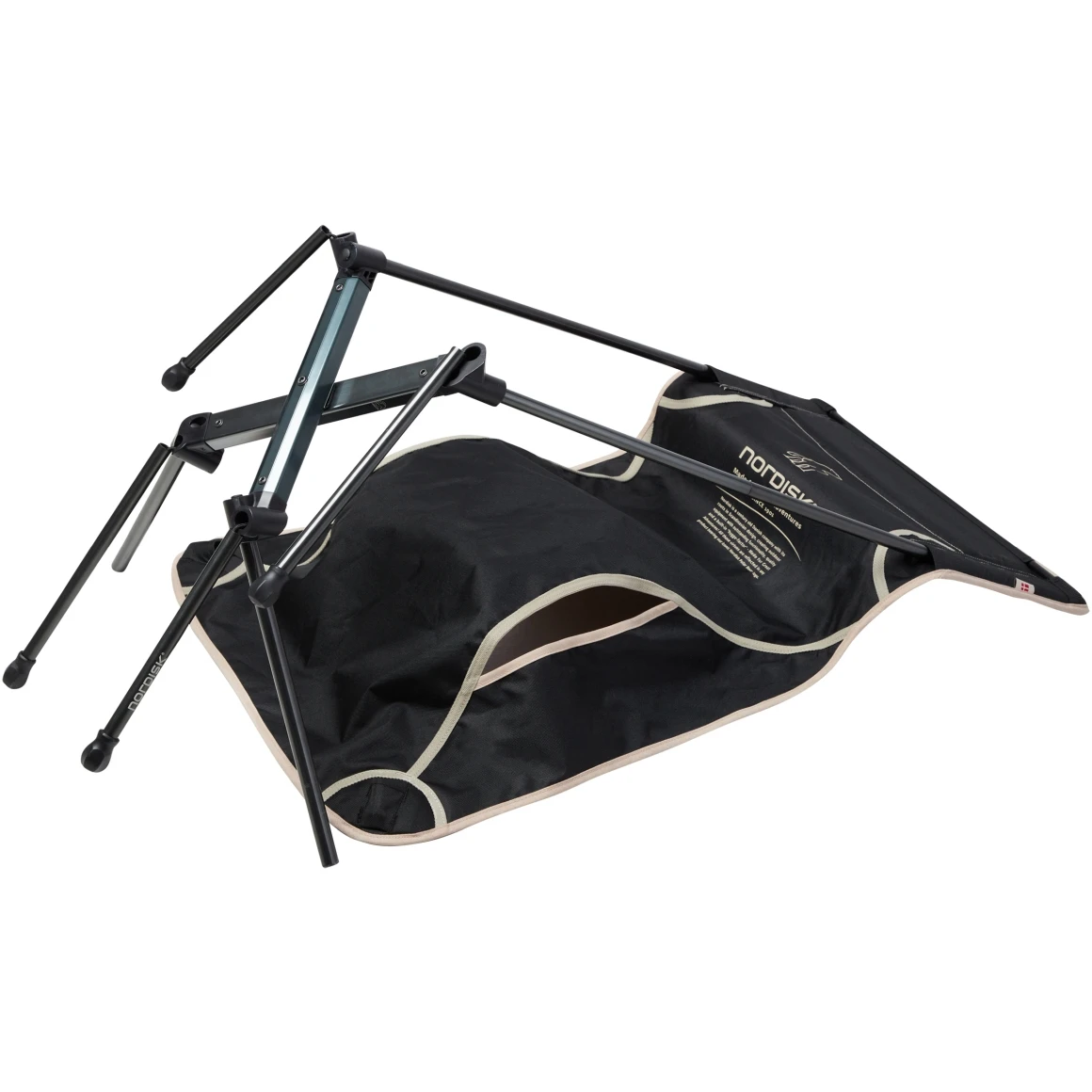 Deze lichtgewicht stoel is gemaakt om te ontspannen. Hij heeft een hogere rugleuning en is perfect voor een koffiepauze. Hij is stevig, duurzaam en gemaakt van een inpakbaar aluminium frame en een speciale nieuwe stof van Nordisk. De stof heeft de uitstraling van canvas, de lichtheid van linnen en ziet er tegelijkertijd stijlvol uit.