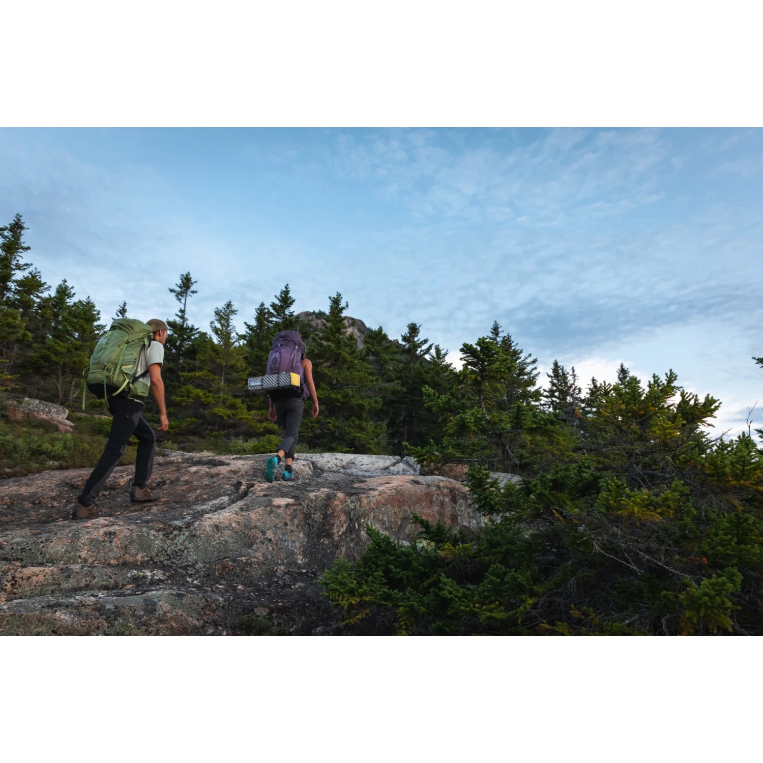 De Atmos AG 50 is uitgerust met het unieke, gespannen . Uitgerust met ExoForm™ Biostretch™ schouderbanden, load control straps en Fit-on-the-Fly™ heupgordel, voelt de rugzak bijna gewichtloos aan op uw rug, zelfs wanneer deze volledig geladen is. Het Inside Out™ compressiebandsysteem houdt de inhoud van de rugzak op zijn plaats tijdens het lopen en biedt ondersteuning tijdens het dragen. Dankzij het praktische Stow-on-the-Go™-systeem kunt u uw trekkingstokken gemakkelijk aan de rugzak bevestigen zonder deze te hoeven verwijderen. In het slaapzakcompartiment met interne verdeler kunt u meer spullen apart opbergen. De geïntegreerde en afneembare regenhoes is opgeborgen in het deksel. Als u gewicht wilt besparen, kunt u met de FlapJacket™ het deksel verwijderen en toch de inhoud van de rugzak tegen weersinvloeden beschermen.