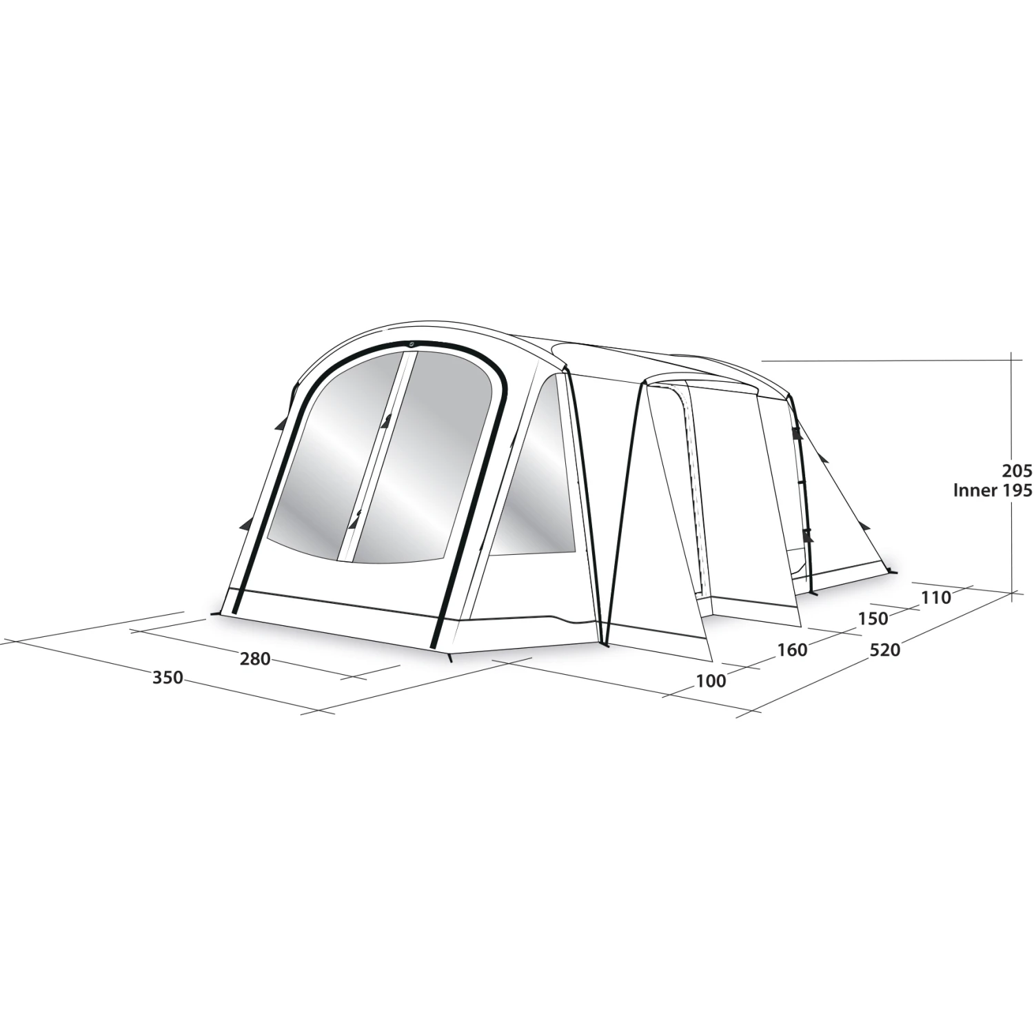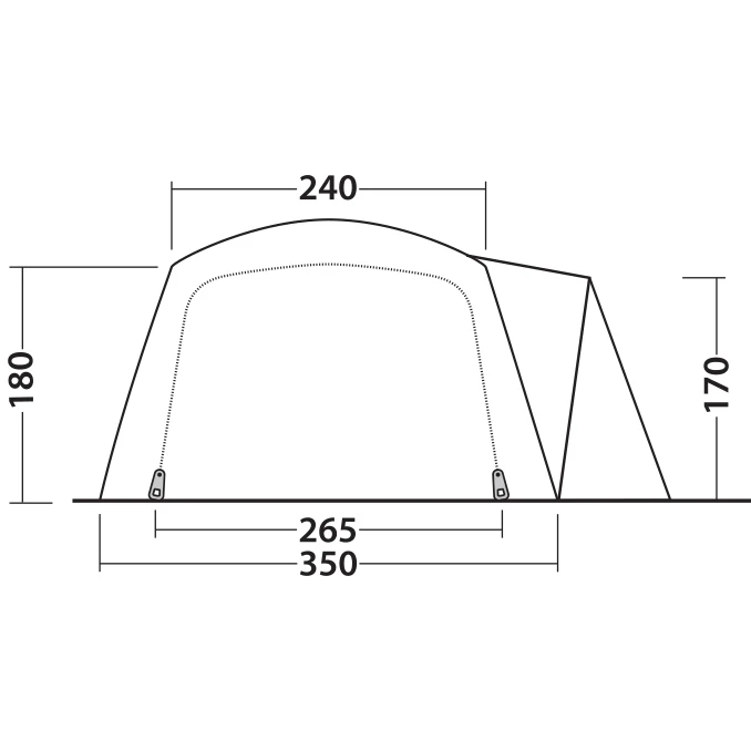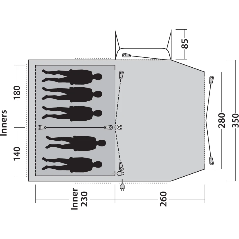 De industriestandaard staat 60 cm per persoon in elke slaapkamer toe – Outwell slaapcomfort is 70-80 cm per persoon.