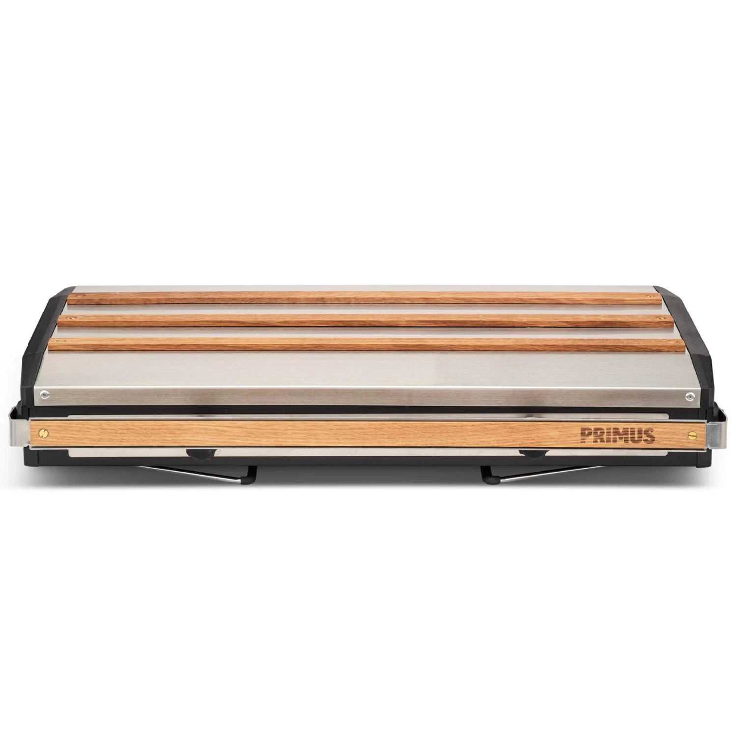 De slanke roestvrijstalen behuizing met gegoten aluminium, eiken inleg en messing elementen biedt een visuele upgrade voor elke camping en zal jarenlang een trouwe metgezel zijn. De interne pannendragers en lekbak kunnen gemakkelijk worden verwijderd voor reiniging. Eenvoudig te sluiten om op te bergen – dit fornuis met zijn slanke profiel kan bijna overal worden opgeborgen.