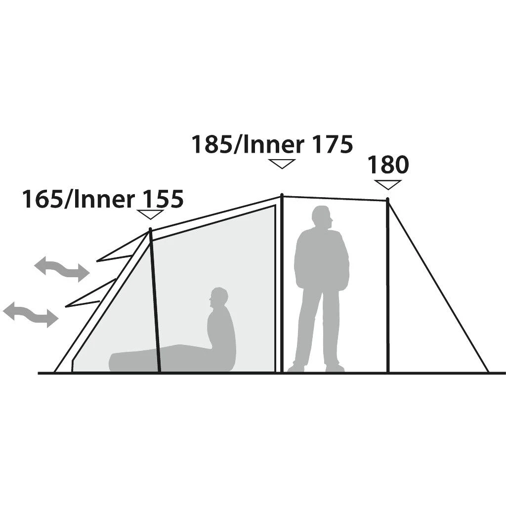 - De tent heeft een comfortabele stahoogte in het leefgedeelte voor meer comfort en bewegingsvrijheid bij het omkleden.